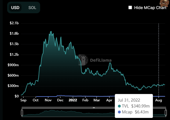 Liquid staking platform Marinade Finance (which holds the most TVL on Solana), increased by 39% in July from $245.21 million on the first day to $340.99 million on the last day of the month.