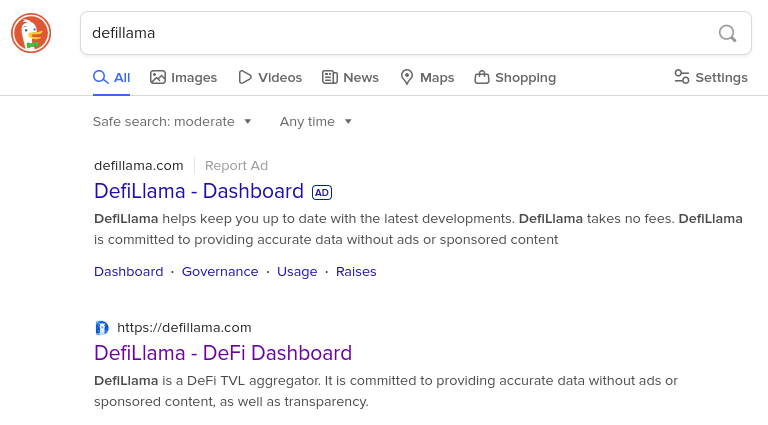 DefiLlama’s pseudonymous developer, 0xngmi, also confirmed that the search engine displayed a fraudulent ad for the DeFi data aggregator. He explained that DeFiLlama’s URL appears accurate on DuckDuckGo. However, clicking on it redirects users to a malicious site that drains users’ funds.
