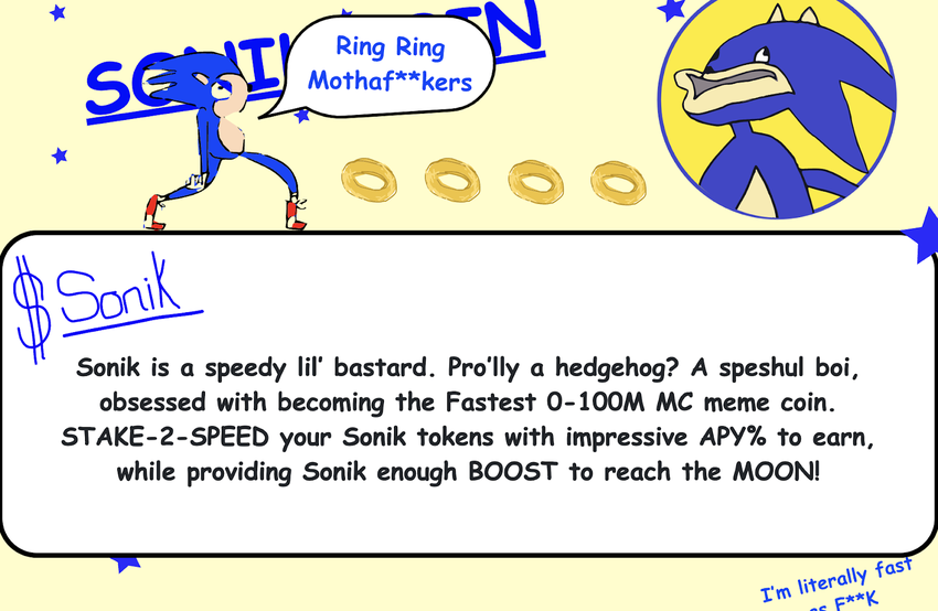 Sonik Coin is a memecoin inspired by Segaās multi-billion dollar video game and movie series. It uses the same imagery but meme-ifies it with a comedic take.Ā