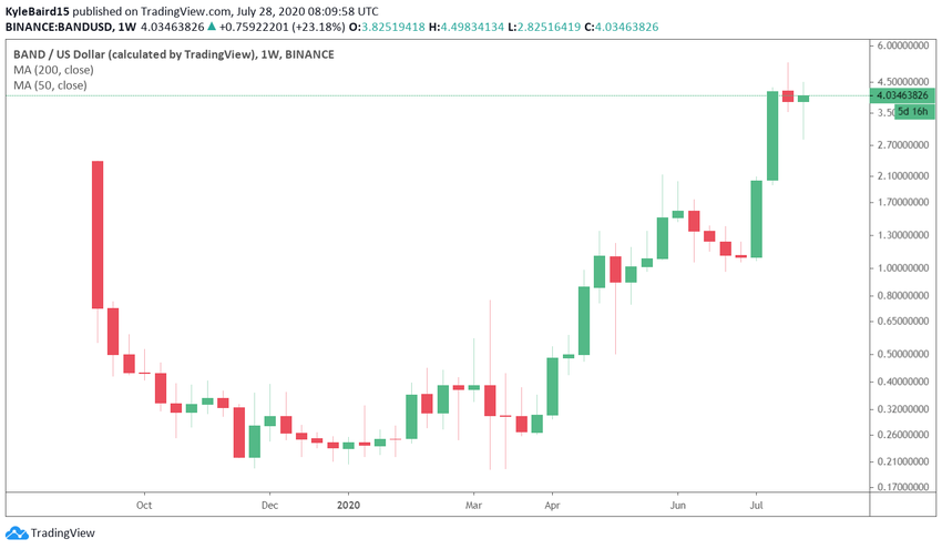 Since the beginning of July, when BAND tokens were priced just over a dollar, it has surged a whopping 310% to reach an all-time high of $4.56 last week. A minor pulled back followed but the token is still up more than 20% on the day.