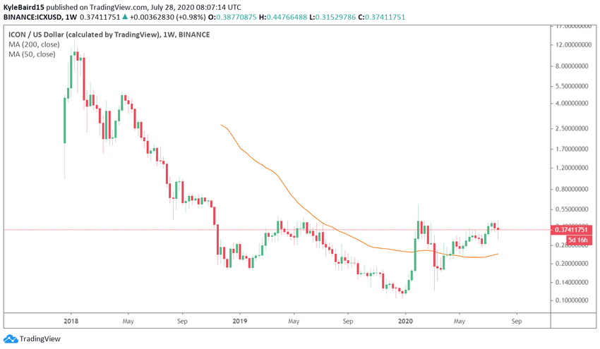 ICON’s native token has been a dead duck in terms of price since the crypto boom in late 2017 when it pumped with its altcoin brethren to an all-time high of over $13. ICX has been trading in a relatively flat line for two years. Today, prices are languishing around the $0.37 level, over 97% down from that ATH.