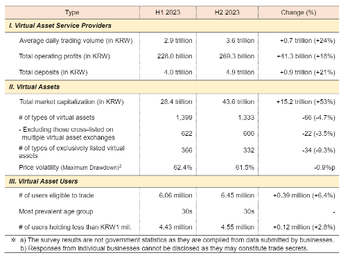 According to a recent KOFIU report, South Korea’s crypto user base increased by 390,000 in 2023, reaching a total of 6.45 million users. The average daily trading volume in the country also rose to 3.6 trillion won, a 24% increase from the first half of the year.