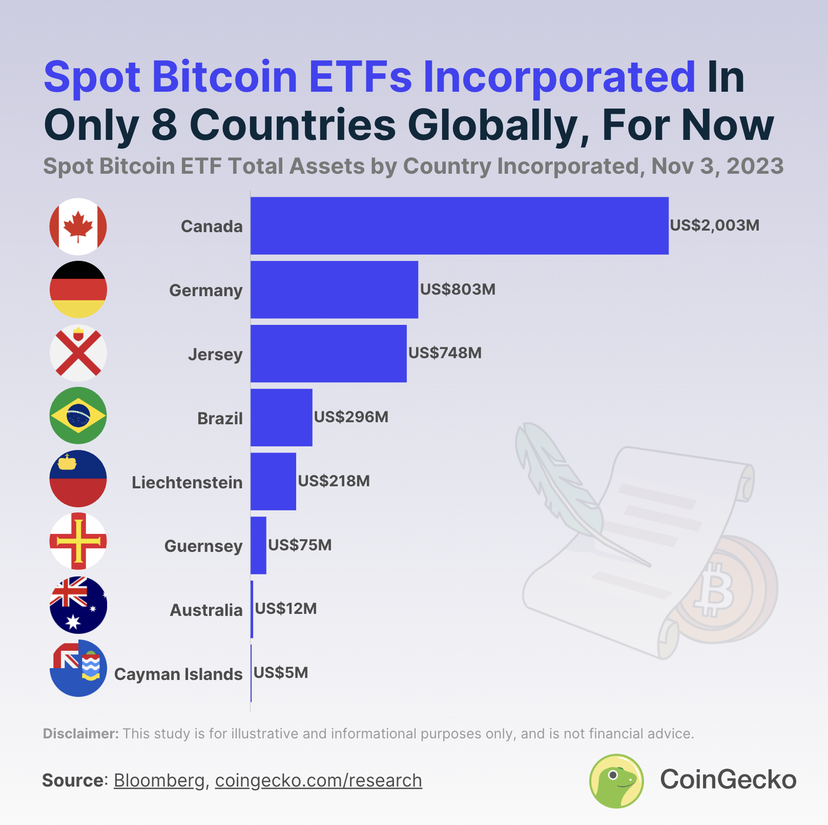 As of now, only eight countries worldwide have embraced Spot Bitcoin ETFs. These include G20 nations Canada, Germany, Brazil, Australia, and tax havens Jersey, Liechtenstein, Guernsey, and the Cayman Islands.