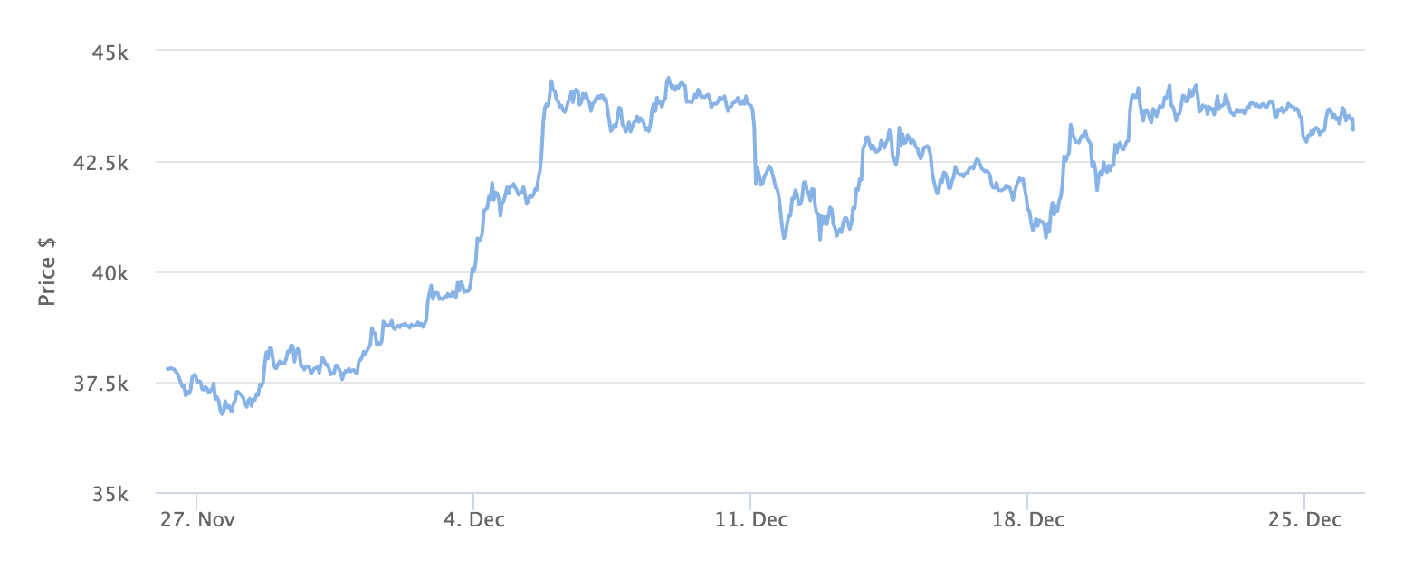 At the time of publication, Bitcoin’s price is $43,195.