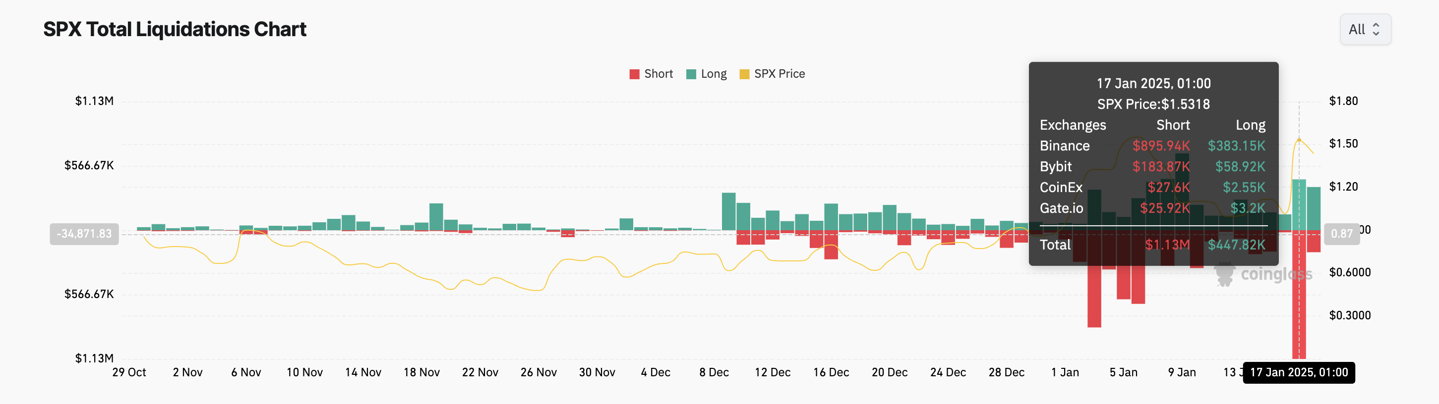 SPX’s price rocketed by 50% during Friday’s intraday trading session. This unexpected price jump triggered a wave of short liquidations, leaving numerous short traders facing substantial losses.