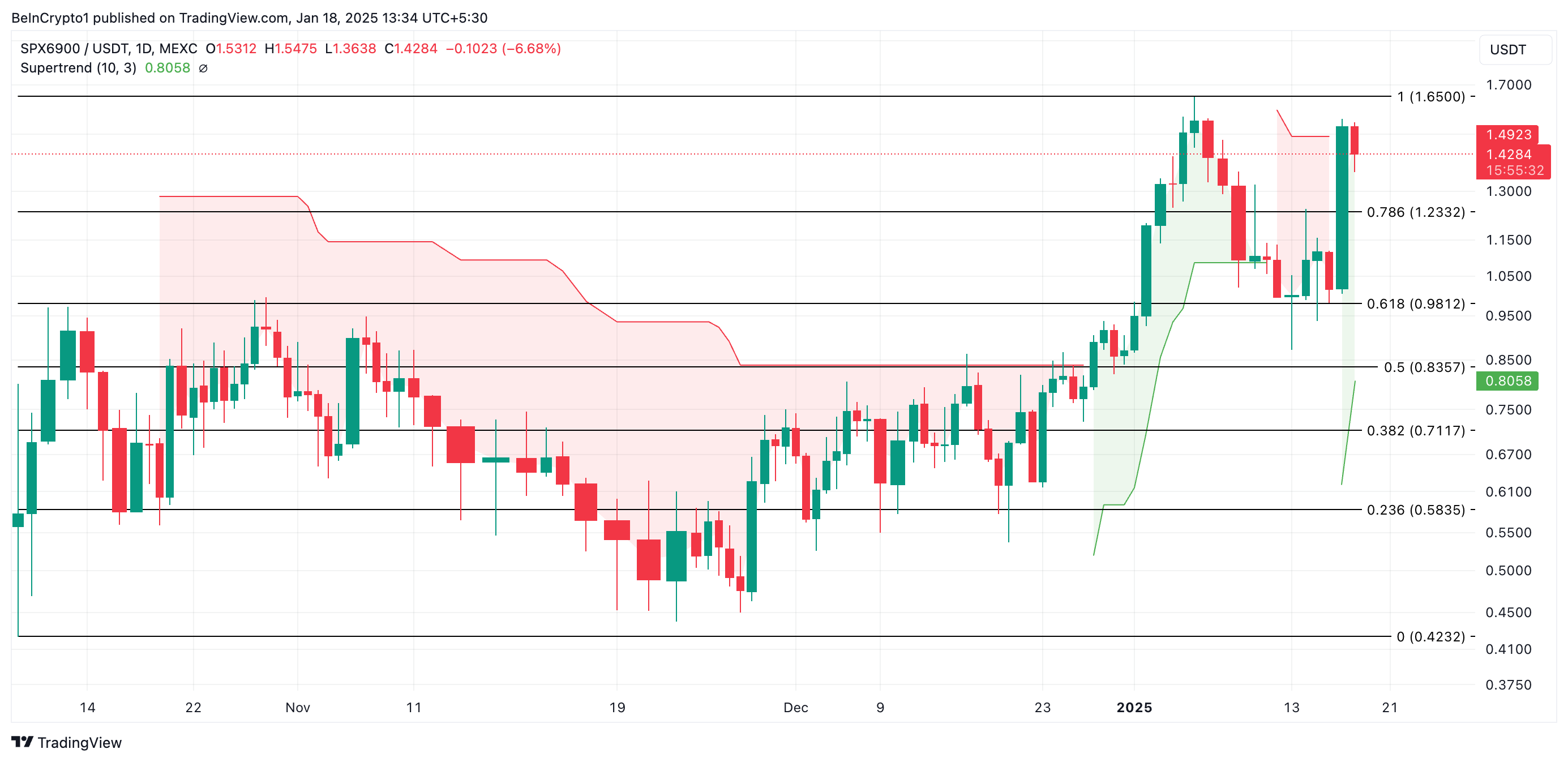 SPX’s 50% surge has prompted a shift in the position of its Super Trend indicator. It is now a green line offering dynamic support below the token’s price on the daily chart.