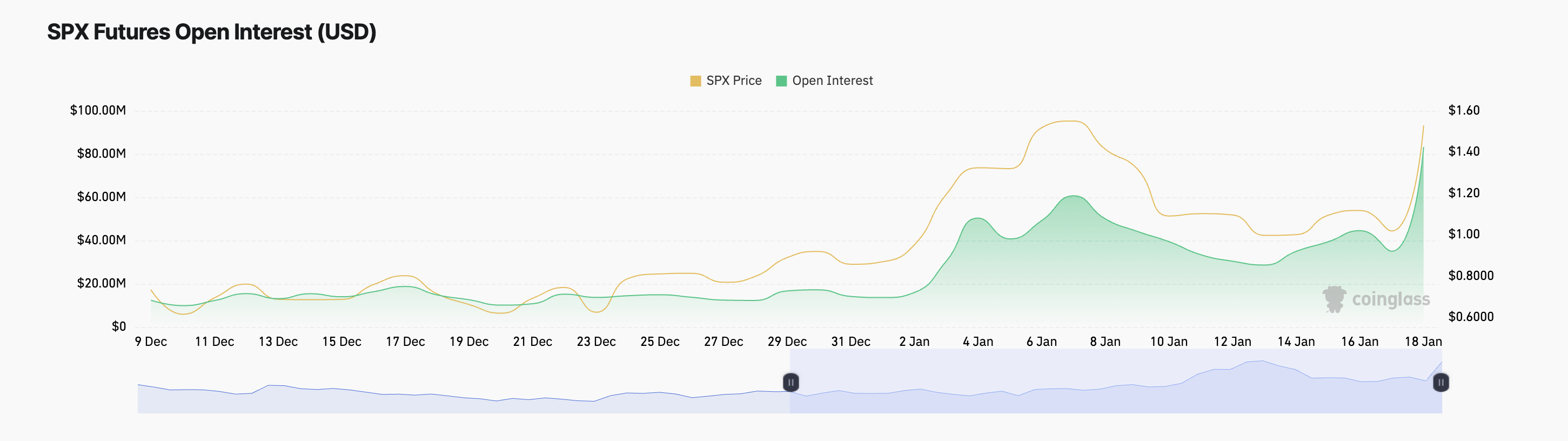 Open interest tracks the total number of outstanding derivative contracts that have not been settled, such as futures or options. When it spikes during a price rally like this, it signals increased market participation and confidence in the upward price movement.