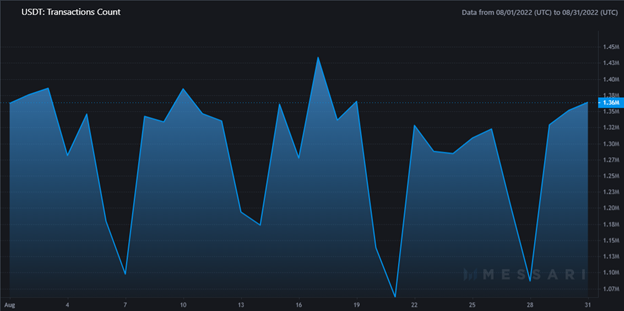 USDT came in second place at around $258 billion, representing 30% of the total on-chain adjusted volume. The total transaction count for August 2022 was 41 million, a 5% increase from July’s figure of 39 million.