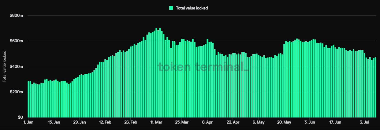 According to Token Terminal data, Stader’s current total value locked (TVL) is $474.74 million. Although this represents a decrease from its year-high of $706.84 million on March 13, the recent inclusion of Stader on Coinbase’s roadmap signals a vote of confidence in its potential, promising further growth and adoption within the crypto community.