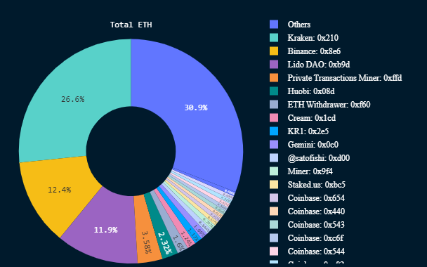 A breakdown of the entities withdrawing staked Ethereum shows that centralized exchanges like Kraken, Binance, and Coinbase dominate it.
