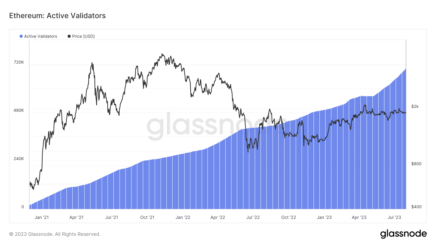 Indeed, data from Glassnode shows that more than 22 million ETH are staked, and nearly 4 million ETH in staking rewards have been distributed, worth $44 billion and $8 billion, respectively.