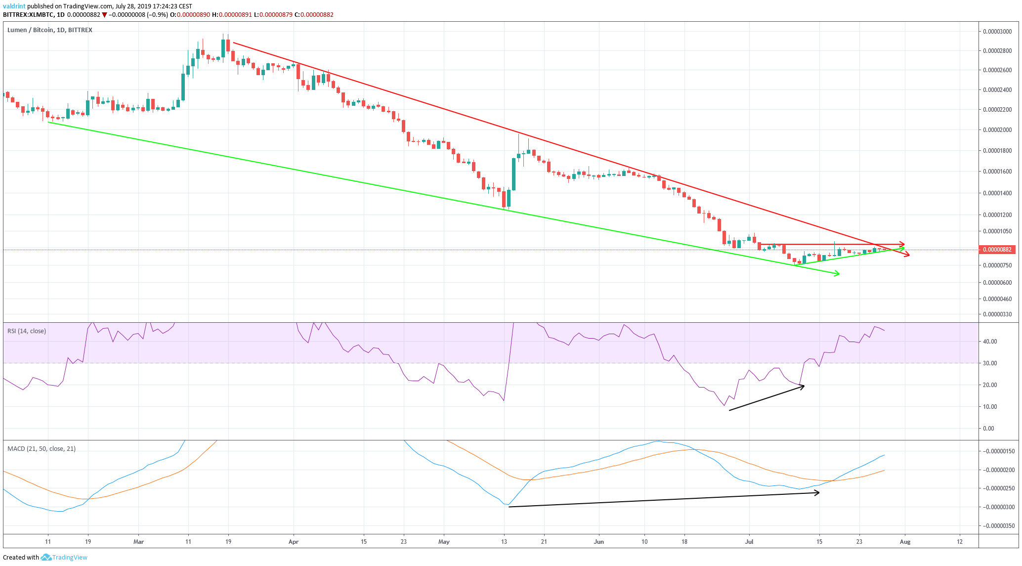A look at the daily time-frame shows that the XLM price has been trading inside a descending wedge since February 11.