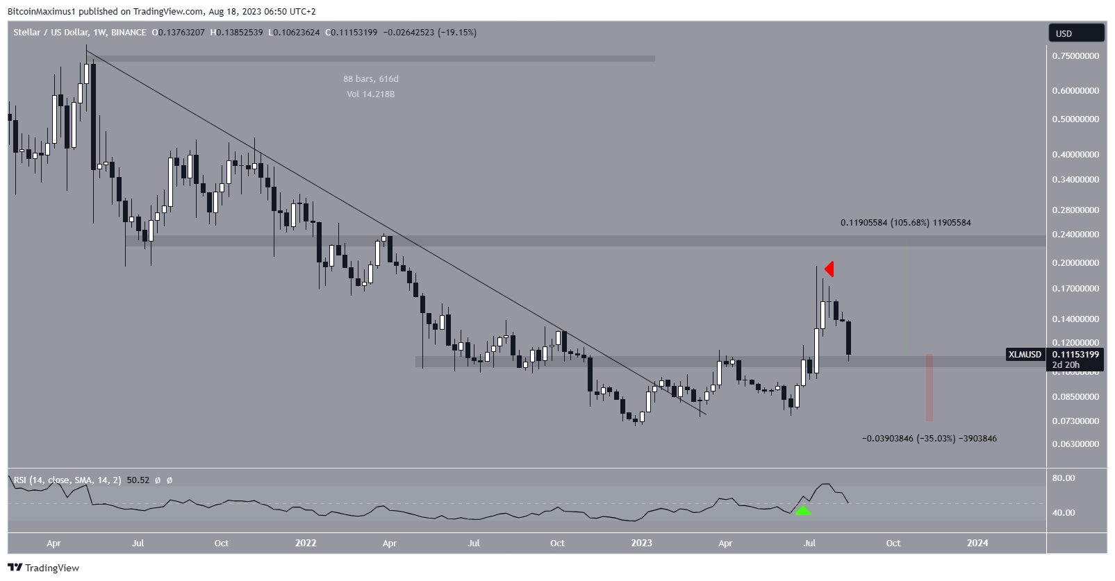 SponsoredIf a bounce at this level occurs, the XLM price can increase by 105% and reach the $0.230 resistance area. On the other hand, a breakdown from the $0.105 area could lead to a 35% decrease toward the yearly lows near $0.070.