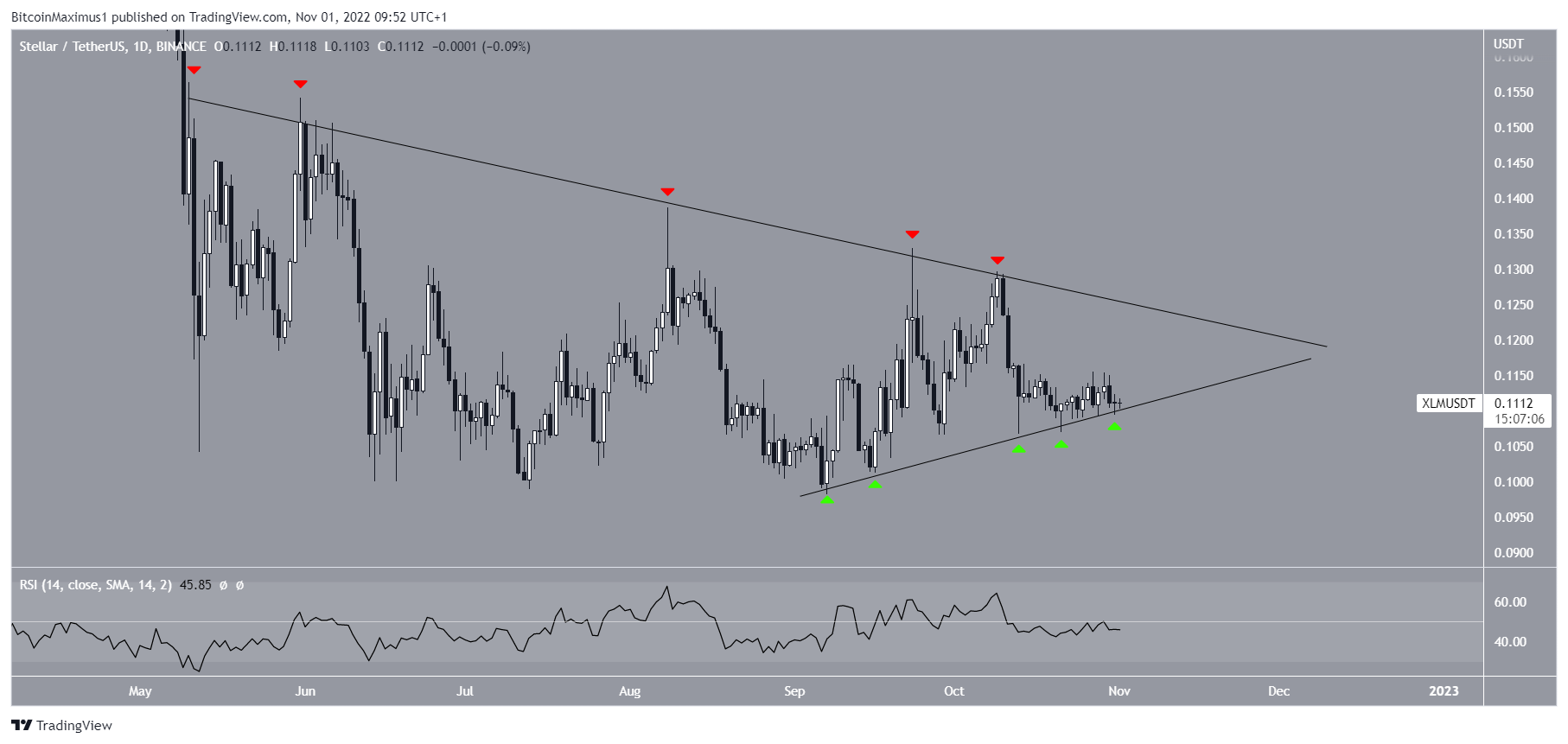 The Stellar (XLM) price is giving conflicting readings in different time frames. The resolution of its short-term pattern could determine the direction of the future trend.