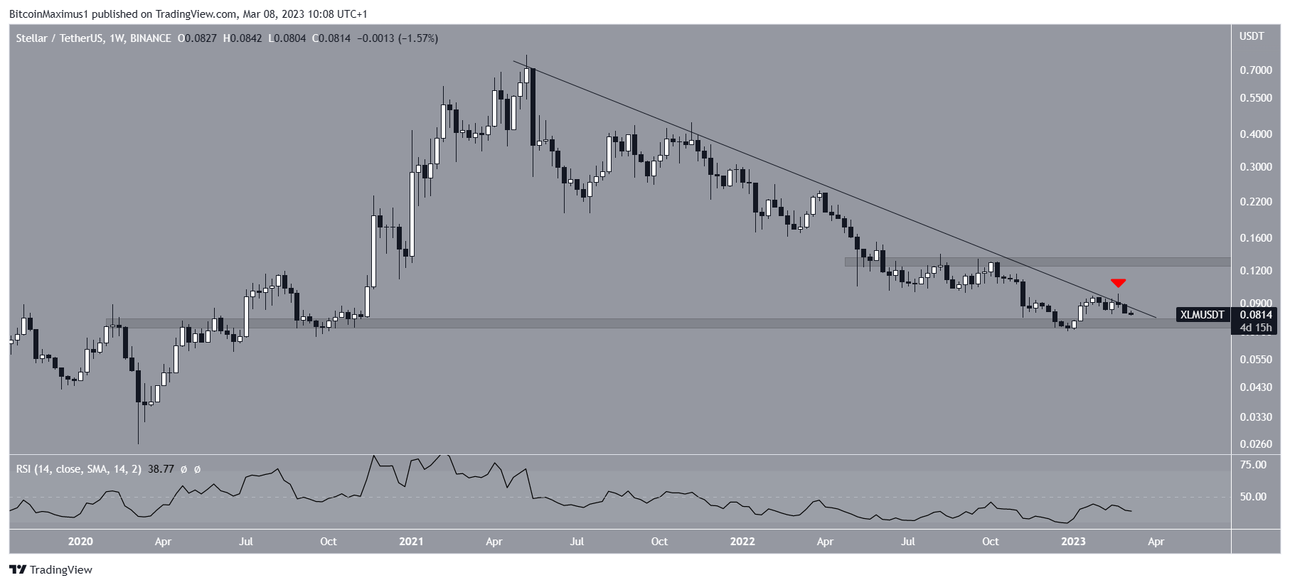 To conclude, the future XLM price movement is undetermined. Whether the price reclaims the $0.082 area or gets rejected could help determine it. A breakout from the $0.082 area would also cause a breakout from the long-term descending resistance line, potentially leading to an increase toward $0.130. On the other hand, a rejection could lead to a drop toward $0.076.