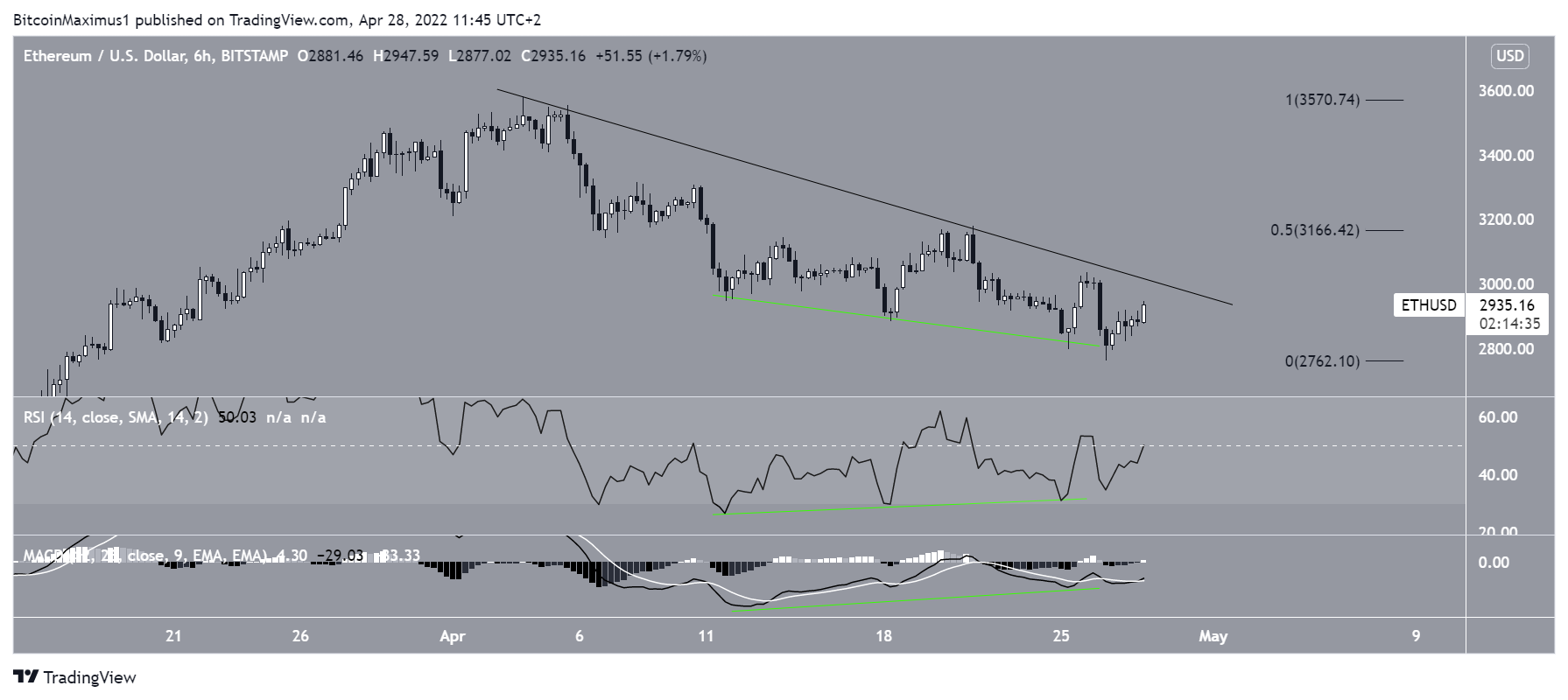 Ethereum (ETH) has been decreasing underneath a descending resistance line since April 3. The downward movement led to a low of $2,762 on April 26.