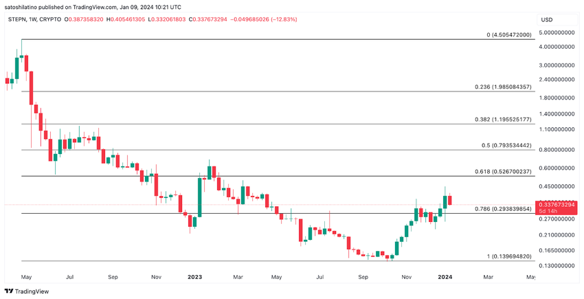 From a technical perspective, GMT shows signs of a breakout on the weekly chart despite facing resistance around $0.527.