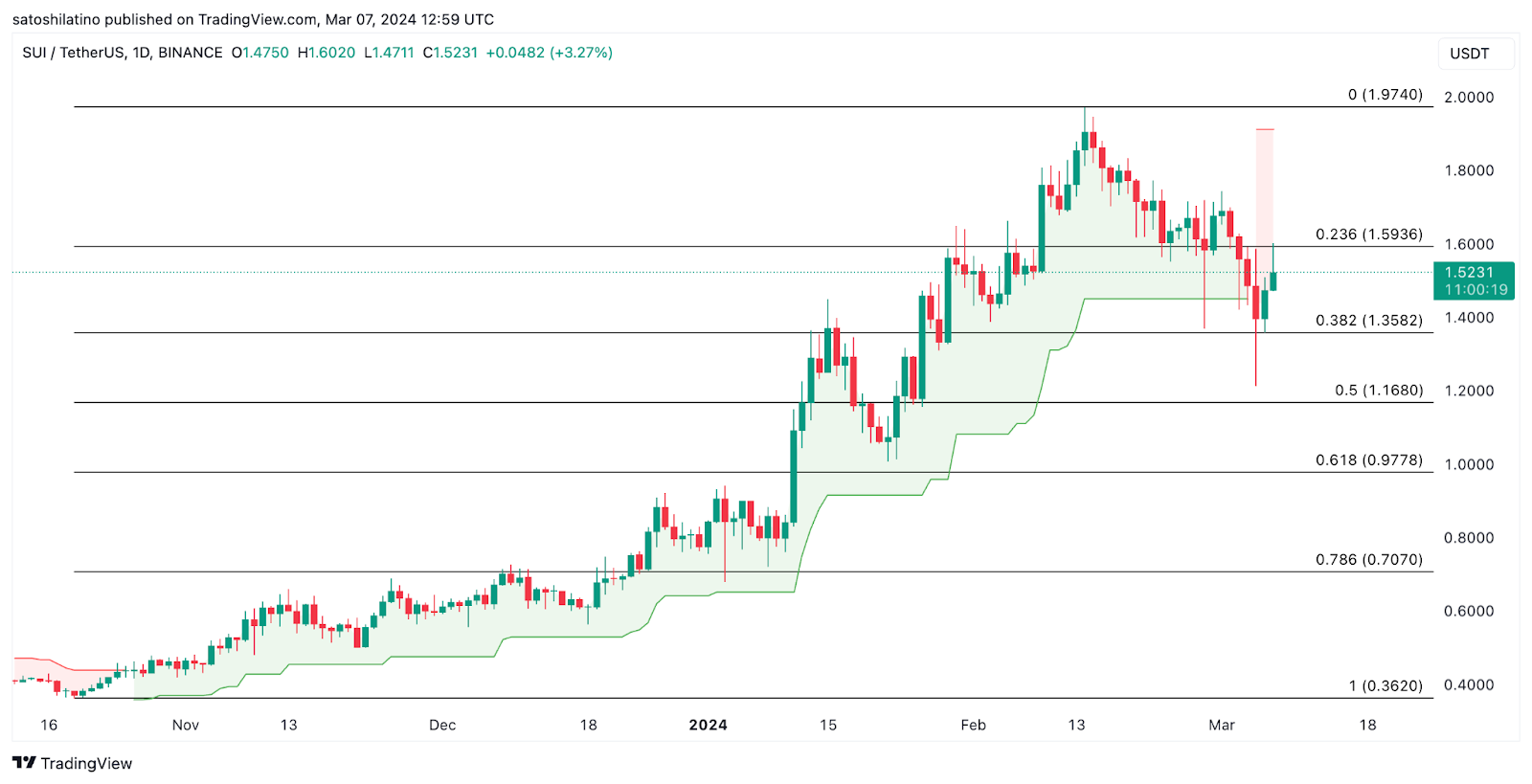 However, amidst this announcement, the SUI token has seen a downtrend, slipping below $1.45. According to the Super Trend indicator, this shift to a bearish outlook puts the spotlight on the $1.60 resistance level. Failure to breach this threshold could see SUI revisiting lower levels, possibly down to $1.17.