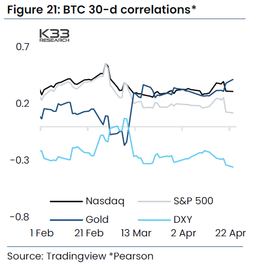 Before the GDP data was released, the 90-day correlation between BTC and USD was -0.7%. Before that, the dollar index recorded a 12% decline since October.