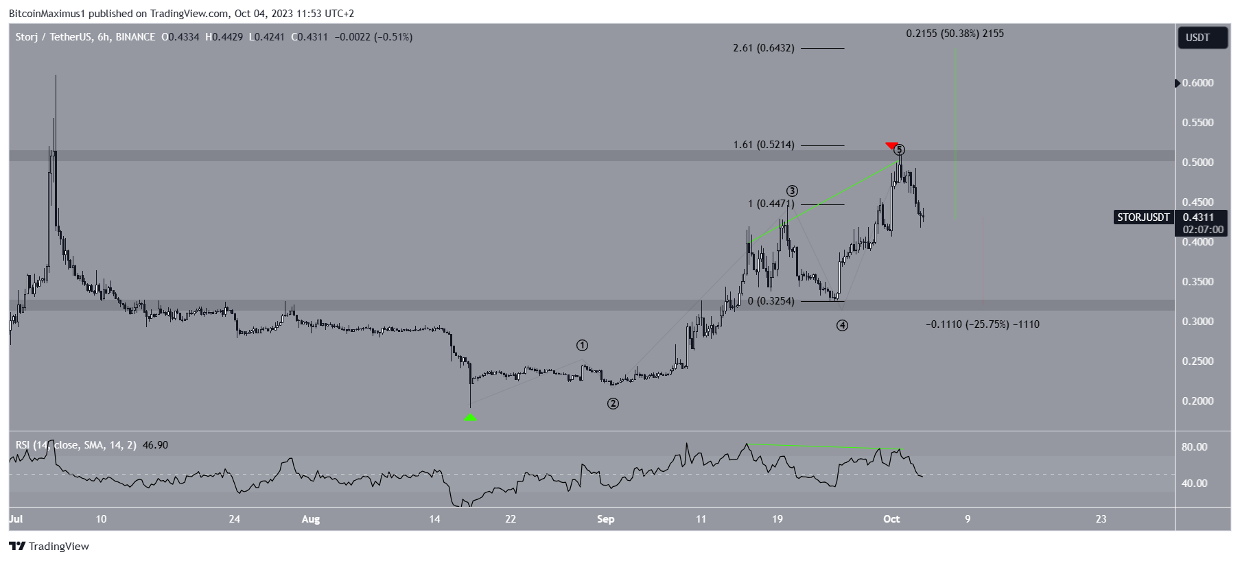 If the STORJ count is correct, the cryptocurrency will gradually fall towards the $0.32 horizontal support area, a drop of 25% measuring from the current price.