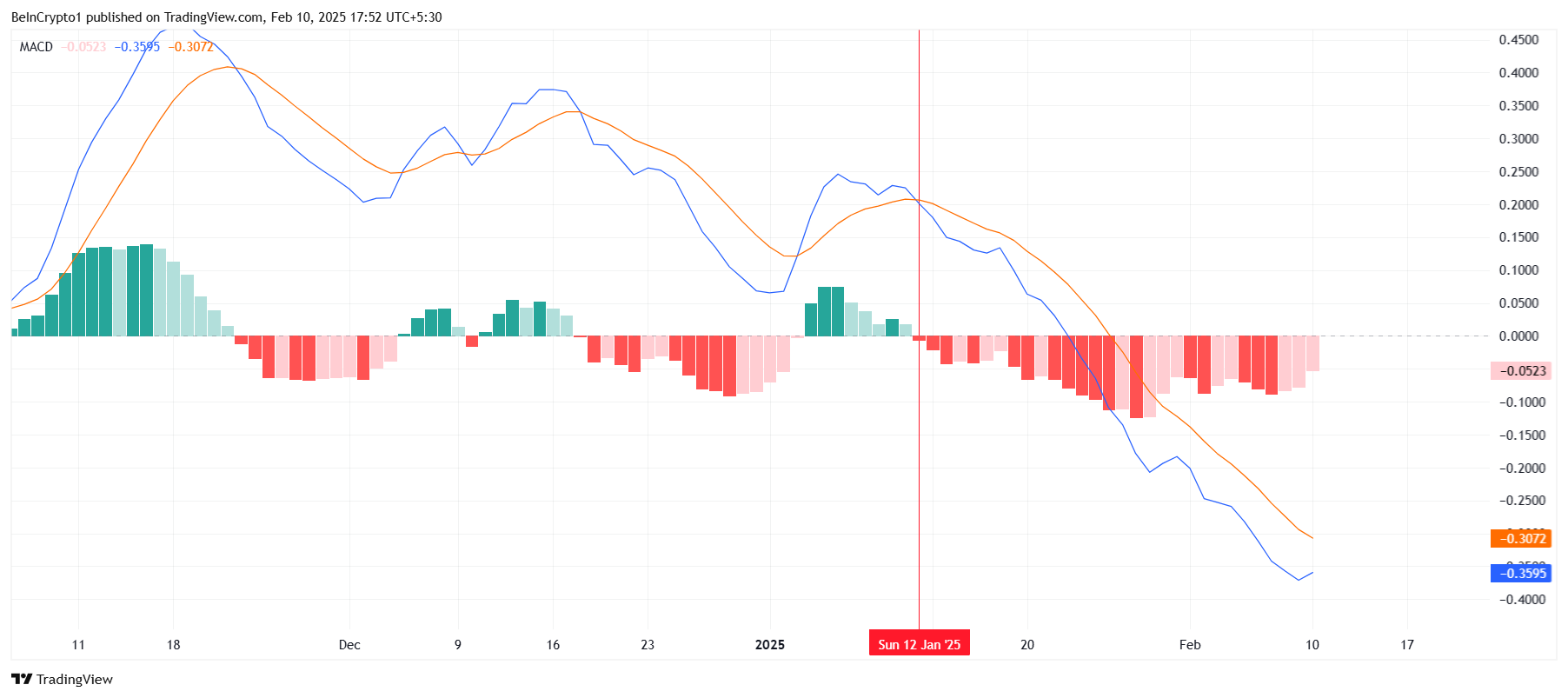 The Moving Average Convergence Divergence (MACD) indicator is approaching a potential bullish crossover. If confirmed, it would be SUI’s first positive shift in nearly a month. This technical development could signal the start of a recovery rally, drawing attention from investors looking for renewed momentum.