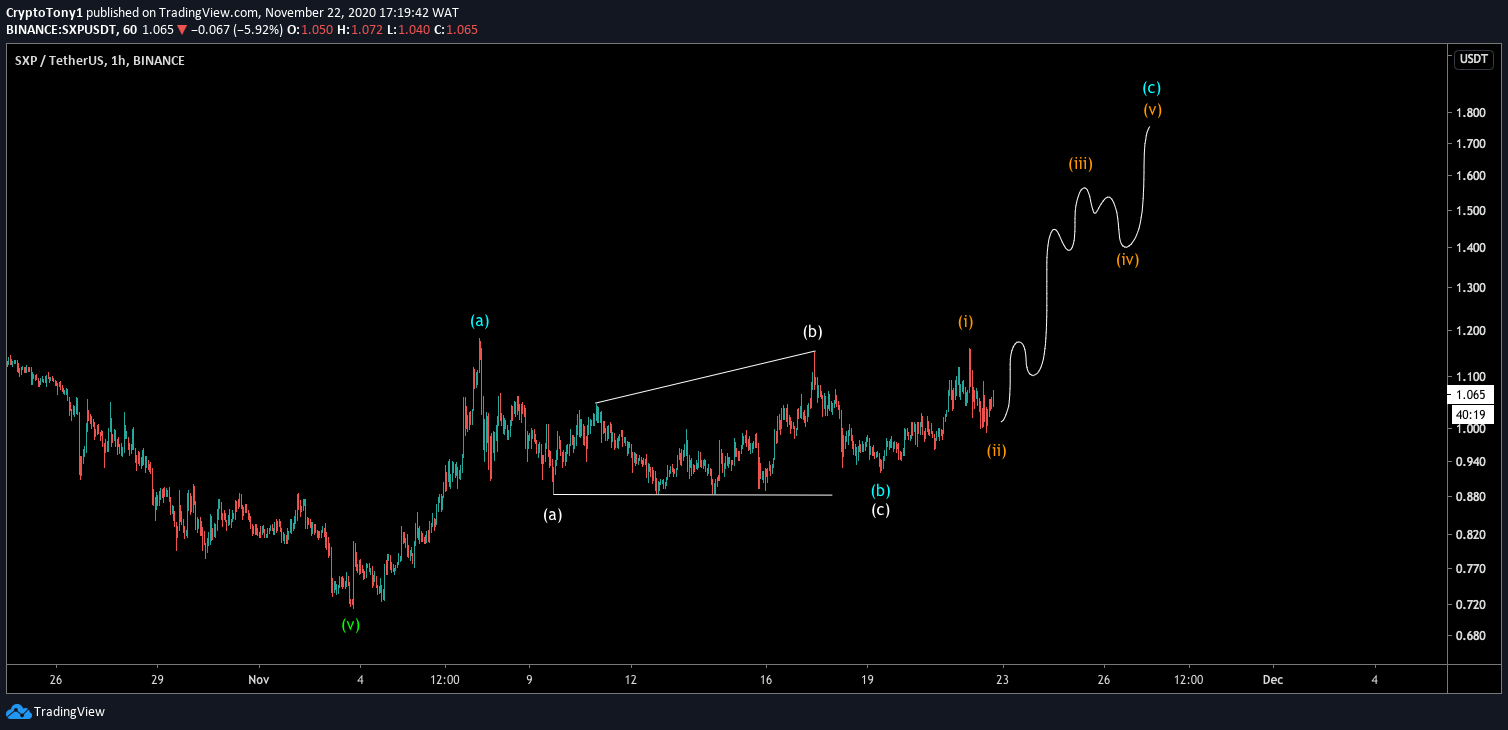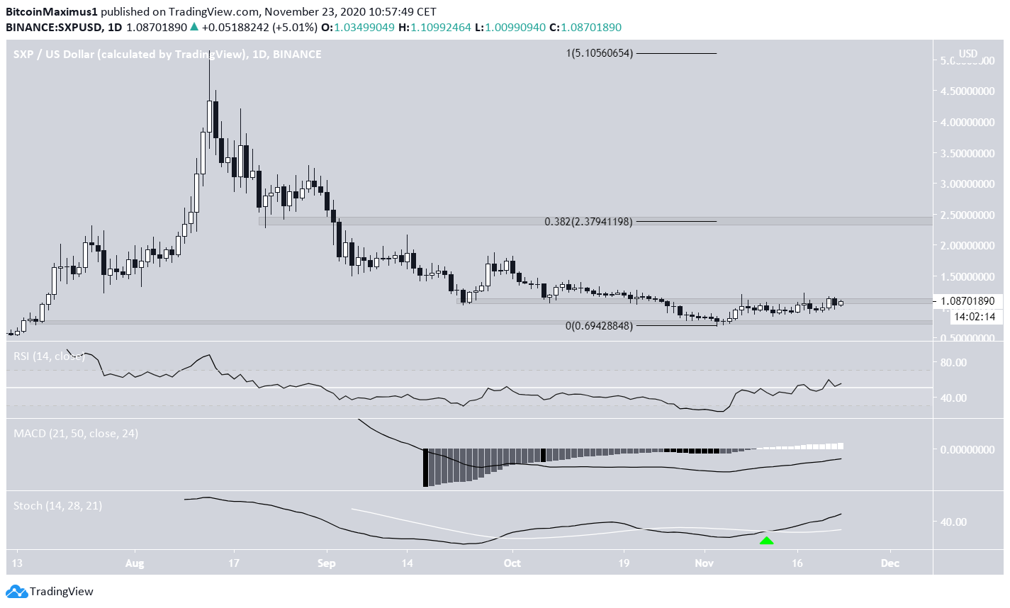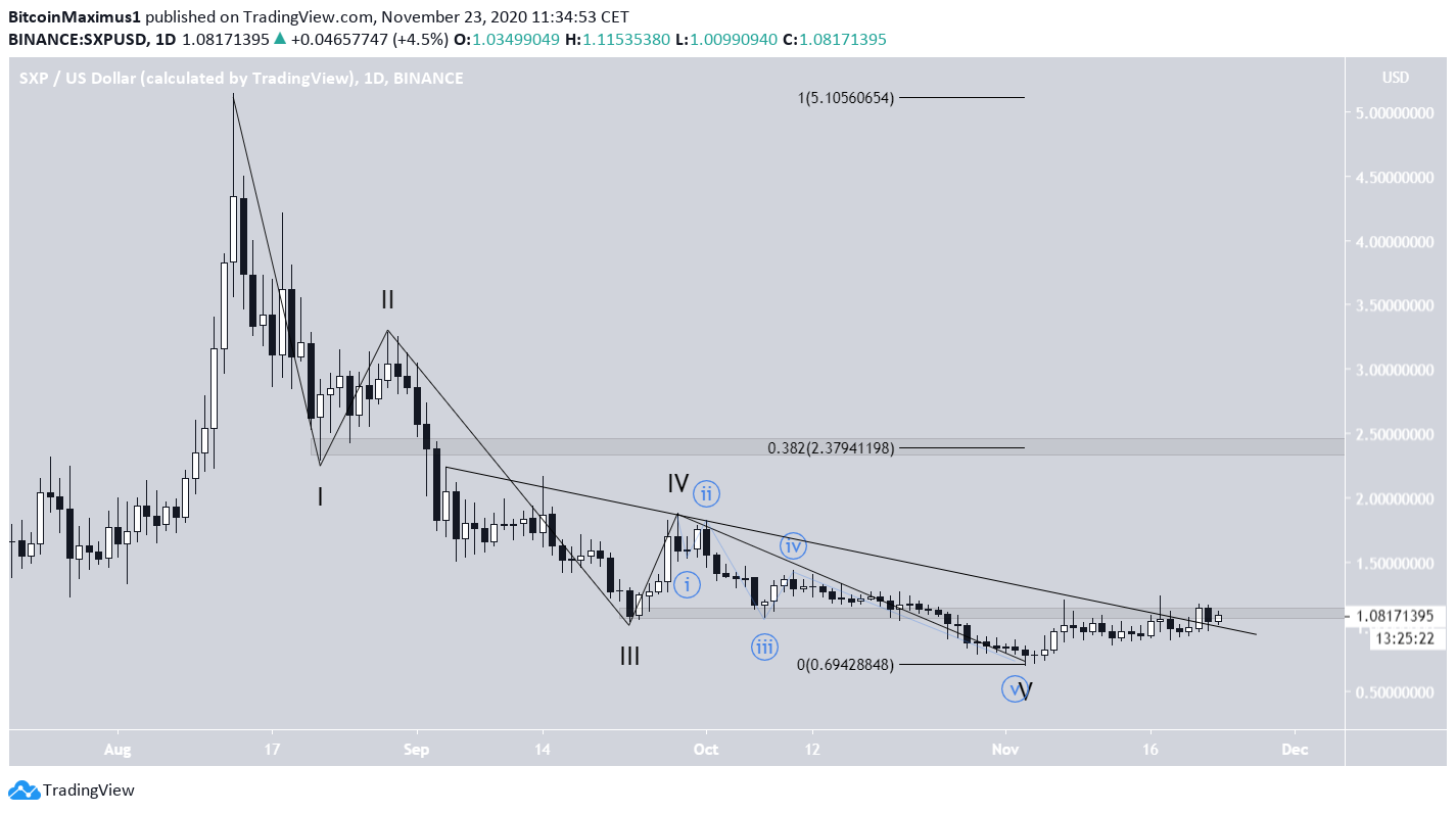 On Nov 3, SXP reached a local low of $0.69 after an extended move to the downside that began on Aug 13.Â