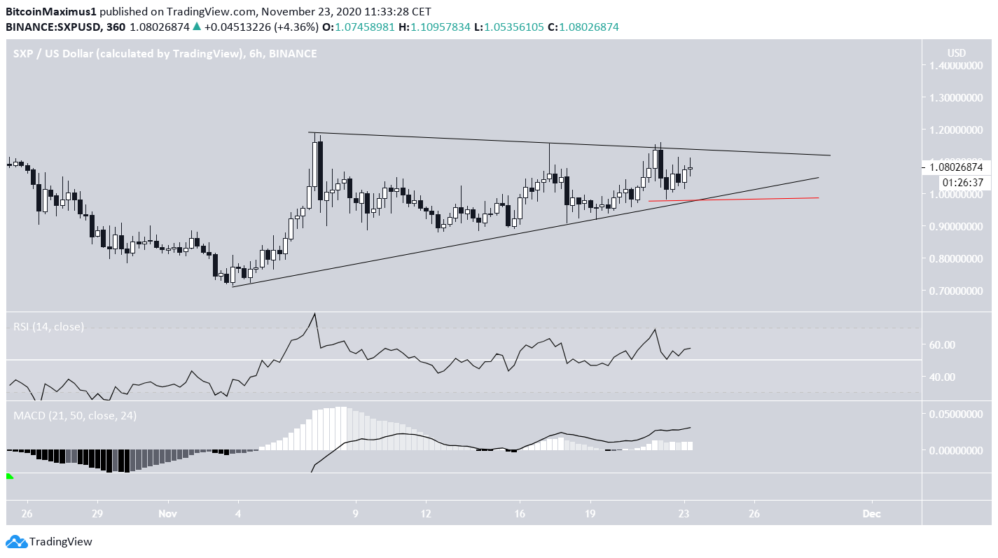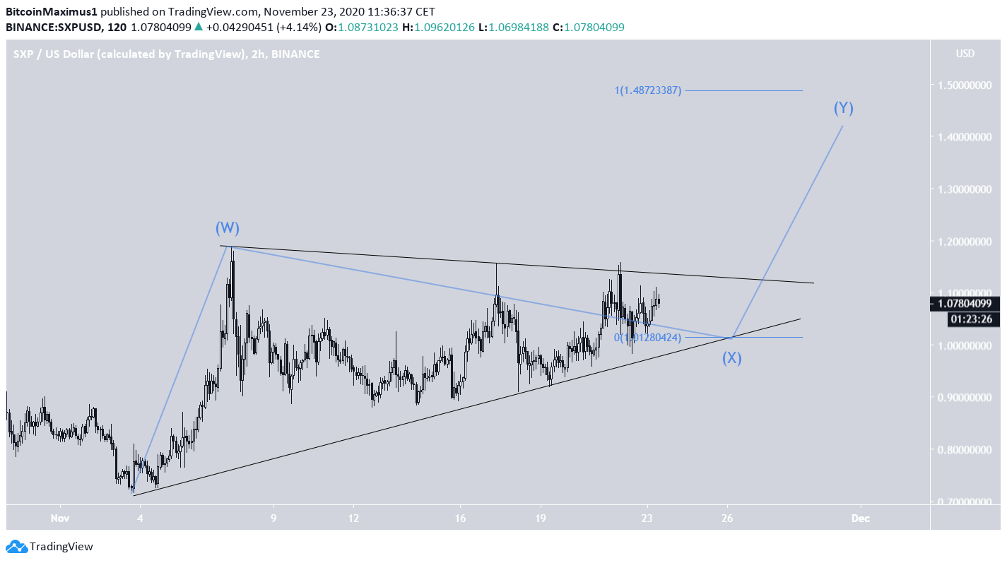 The SXP price is expected to break out from its current short-term symmetrical triangle and begin moving towards $1.48 and the next resistance area at $2.38.