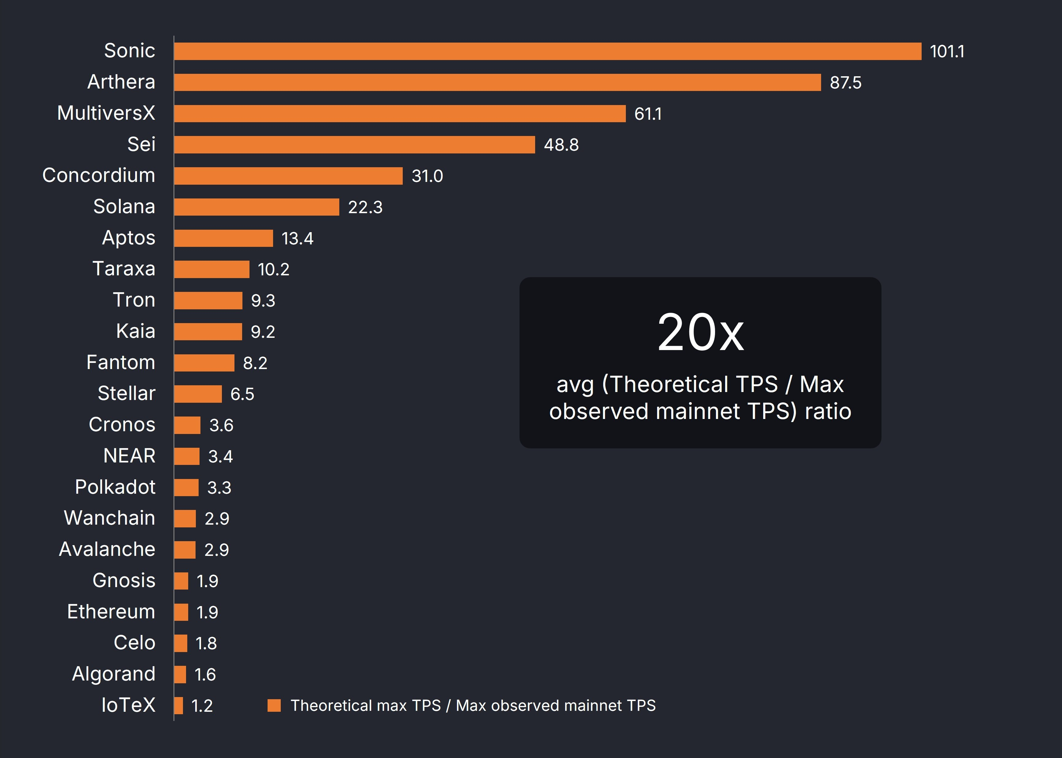 The results of this test revealed extremely high exaggeration. Sonic (formerly Fantom) reported blockchain throughput over 100x its actual capabilities, but the industry average was 20x. The L1 blockchain space is full of fierce competition, providing a clear incentive for this systematic inflation.