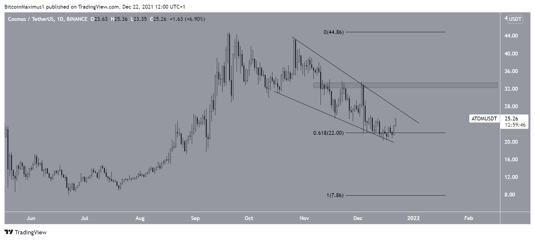 On Dec 15, ATOM bounced at the 0.618 Fib retracement support level at $22 and has been increasing since.