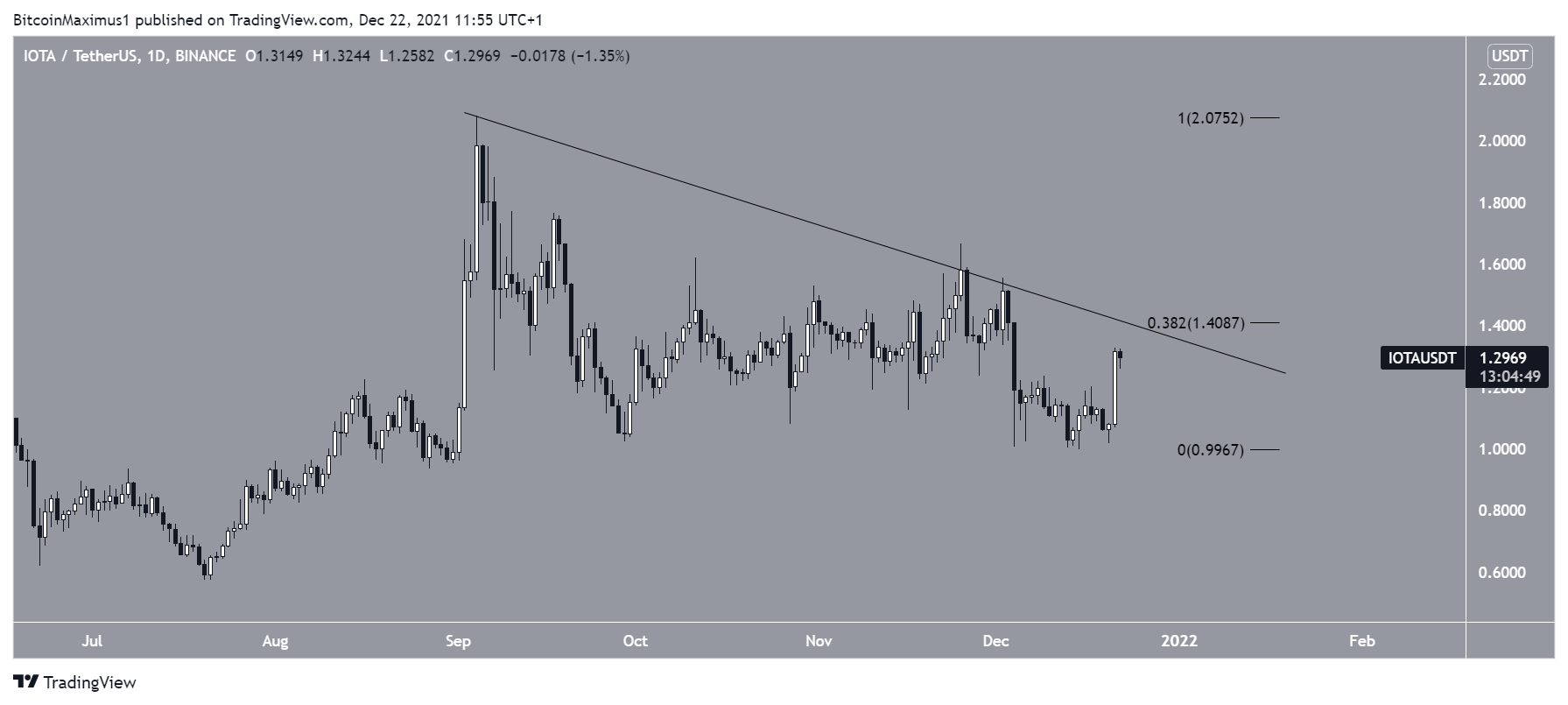 IOTA has been decreasing under a descending resistance line since Sept 4. This led to a low of $1 on Dec 4.