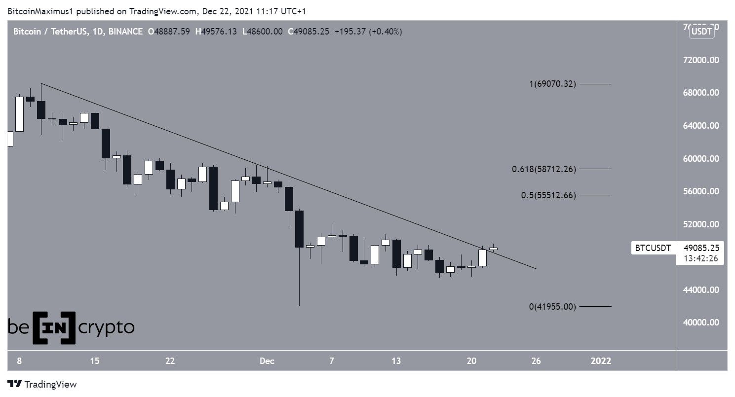 BTC had been following under a descending resistance line since reaching an all-time high price on Nov 10. On Dec 22, it managed to break out from the line, indicating that the correction is complete.