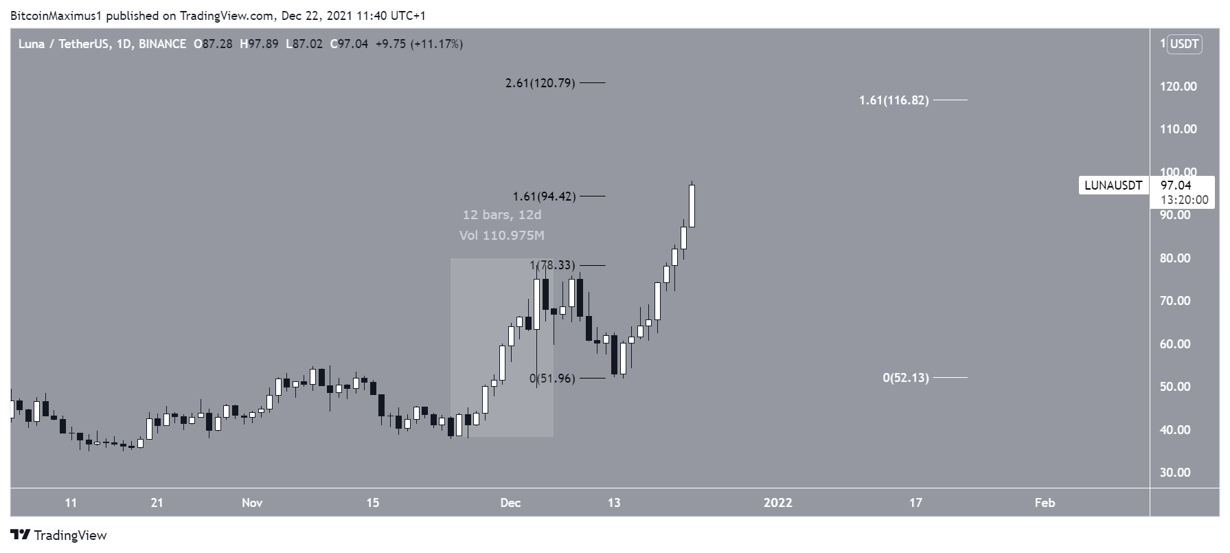 LUNA has been increasing at an accelerated rate since reaching a local low on Dec 13. On Dec 22, it reached a new all-time high price of $98.20.