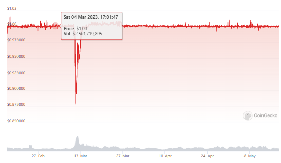 The USDC stablecoin lost its peg to the U.S. dollar after news surfaced that its issuer held $3.3 billion in reserves at Silicon Valley Bank. Later, USDC regained 7% to snap back to $1.