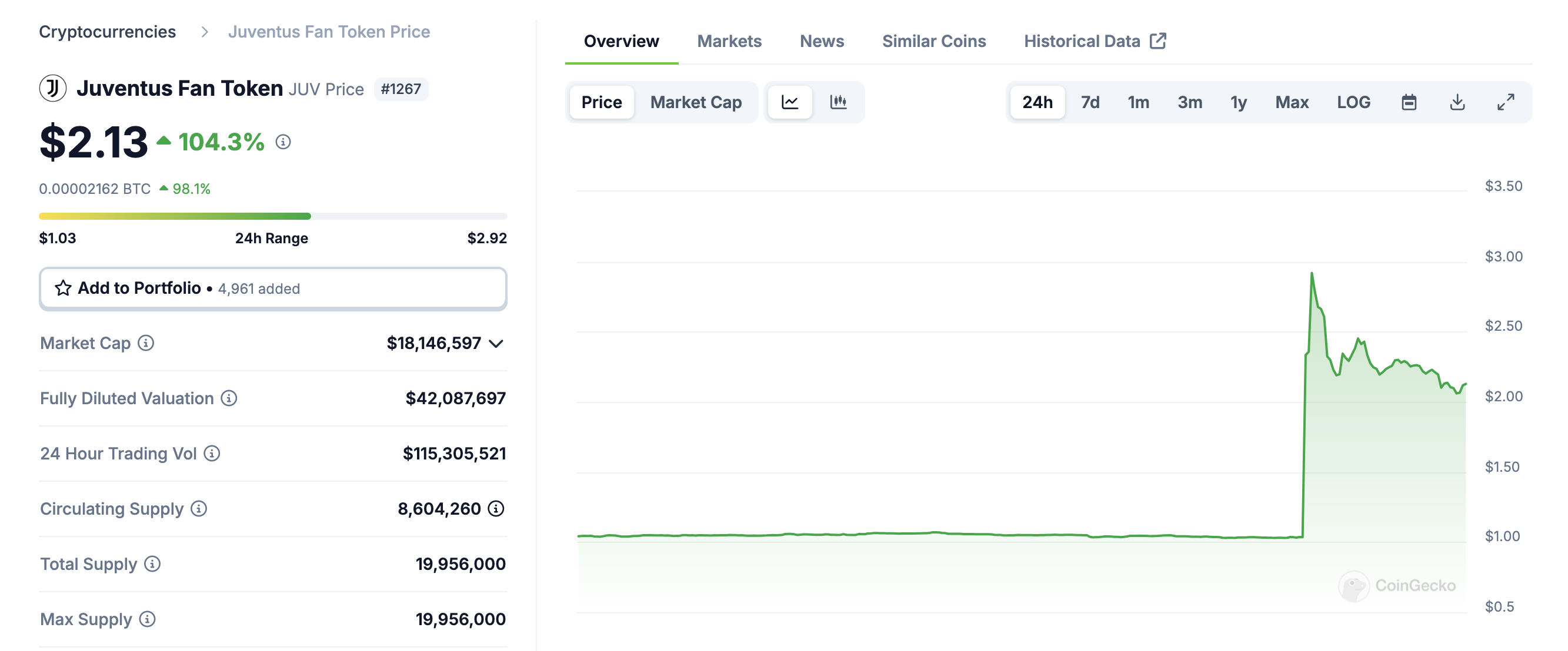 For world-famous football teams, a collaboration like this is fairly standard. In the last World Cup, Binance made a futures index for fan tokens and football-themed fan tokens like JUV have spiked all around the world. Juventus’ token has been inactive for several years, but it shot up today after the Tether announcement: