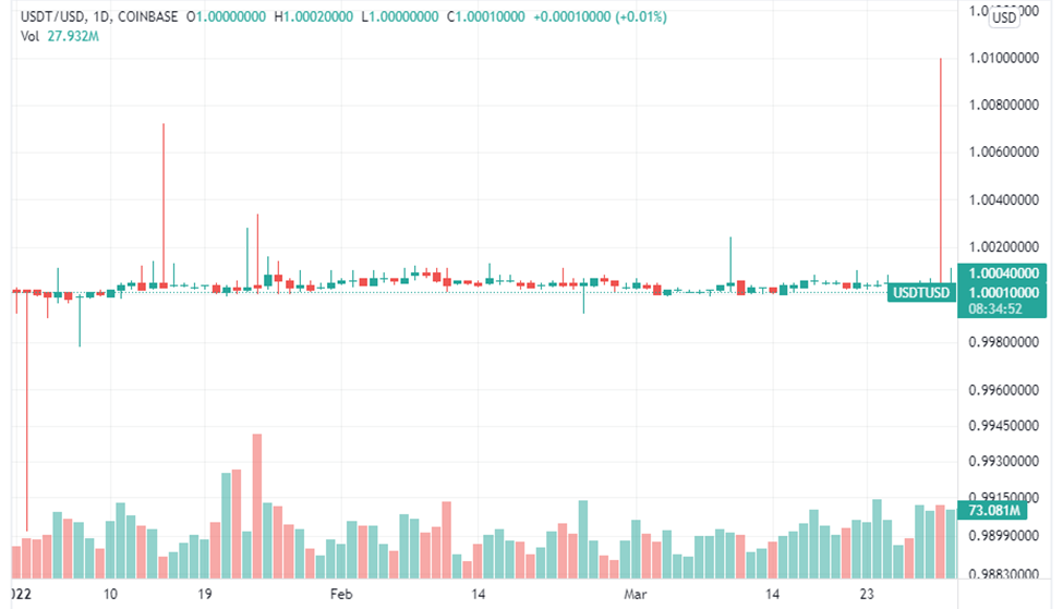 Overall, there was no change between USDT’s opening and closing price in Q1 2021.