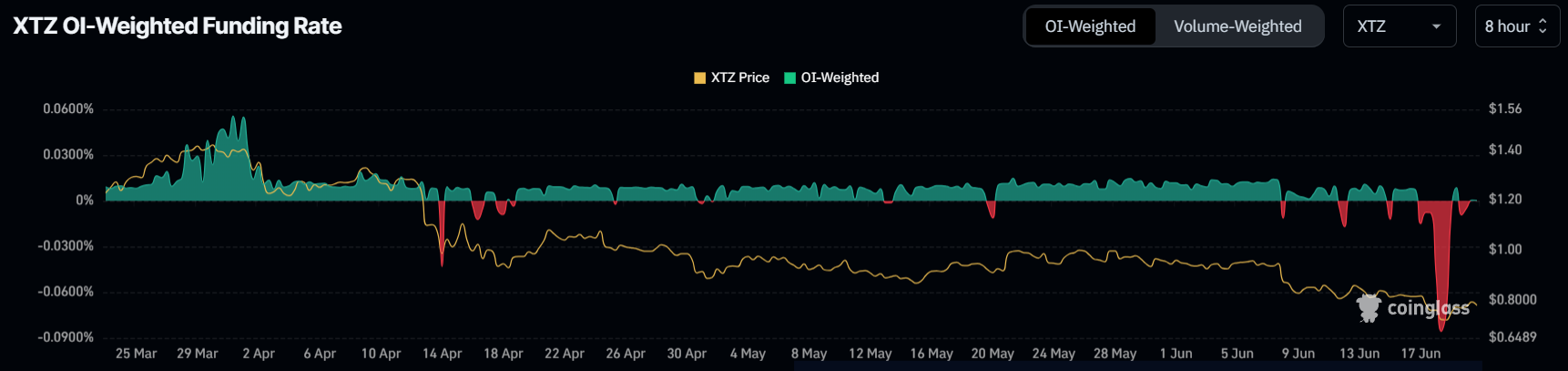 However, Tezos’s funding rate fluctuates between positive and negative territory. This volatility points to a lack of consensus among investors about the short-term direction of the market.