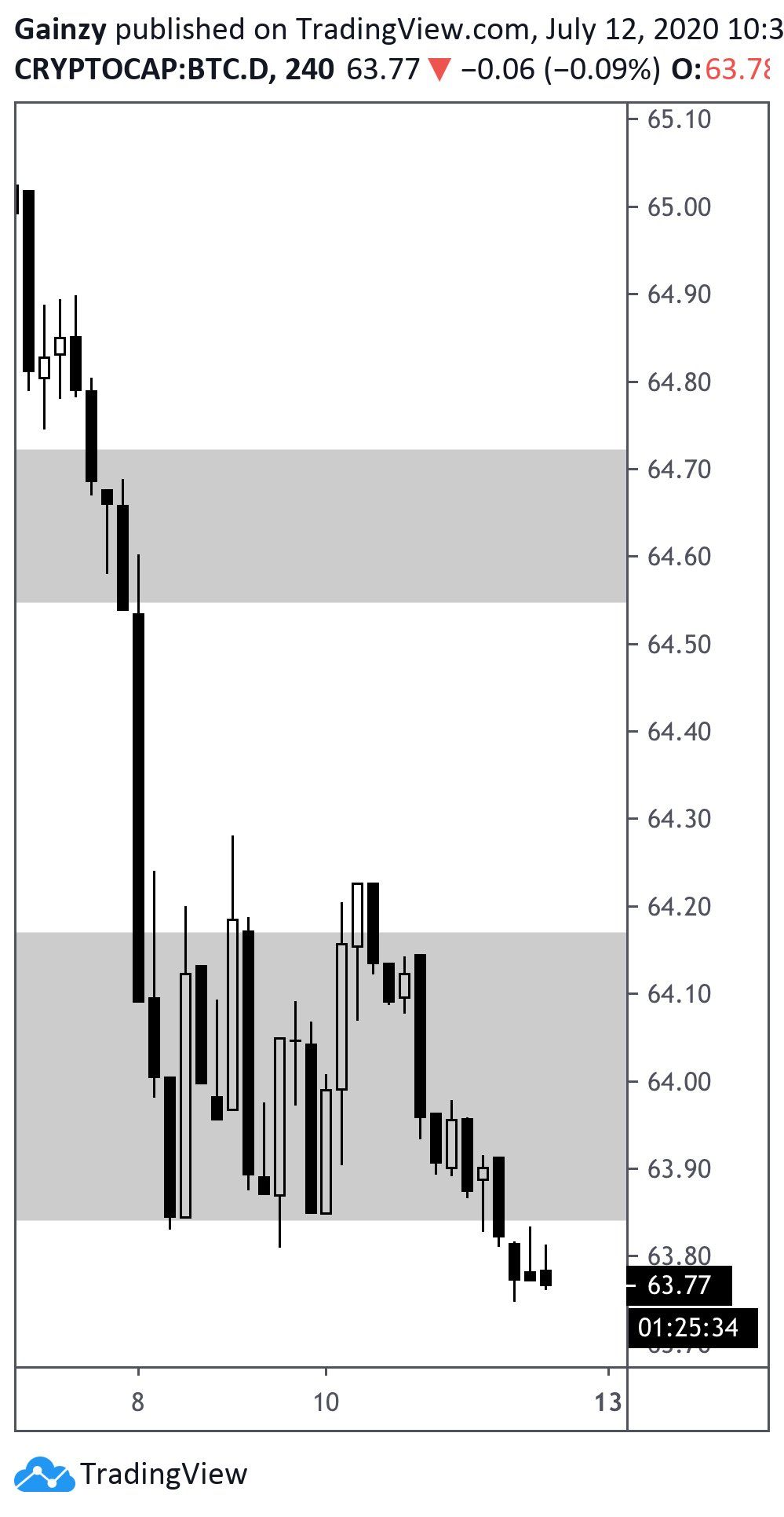Therefore, in order for the BTCD to drop to the support area outlined, the BTC price would have to increase.