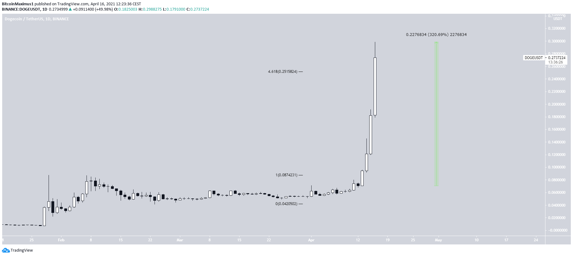 On April 16, it reached an all-high price of $0.298. This measured an increase of 320% in only three days.
