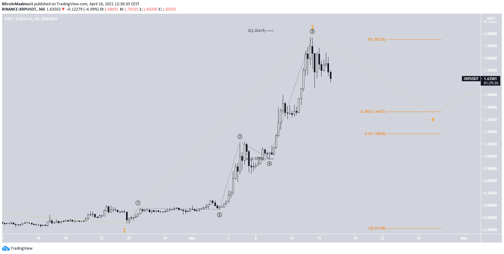 If the count is correct, XRP is currently correcting. The 0.382-0.5 Fib retracement level at $1.18-$1.36 is expected to act as support.