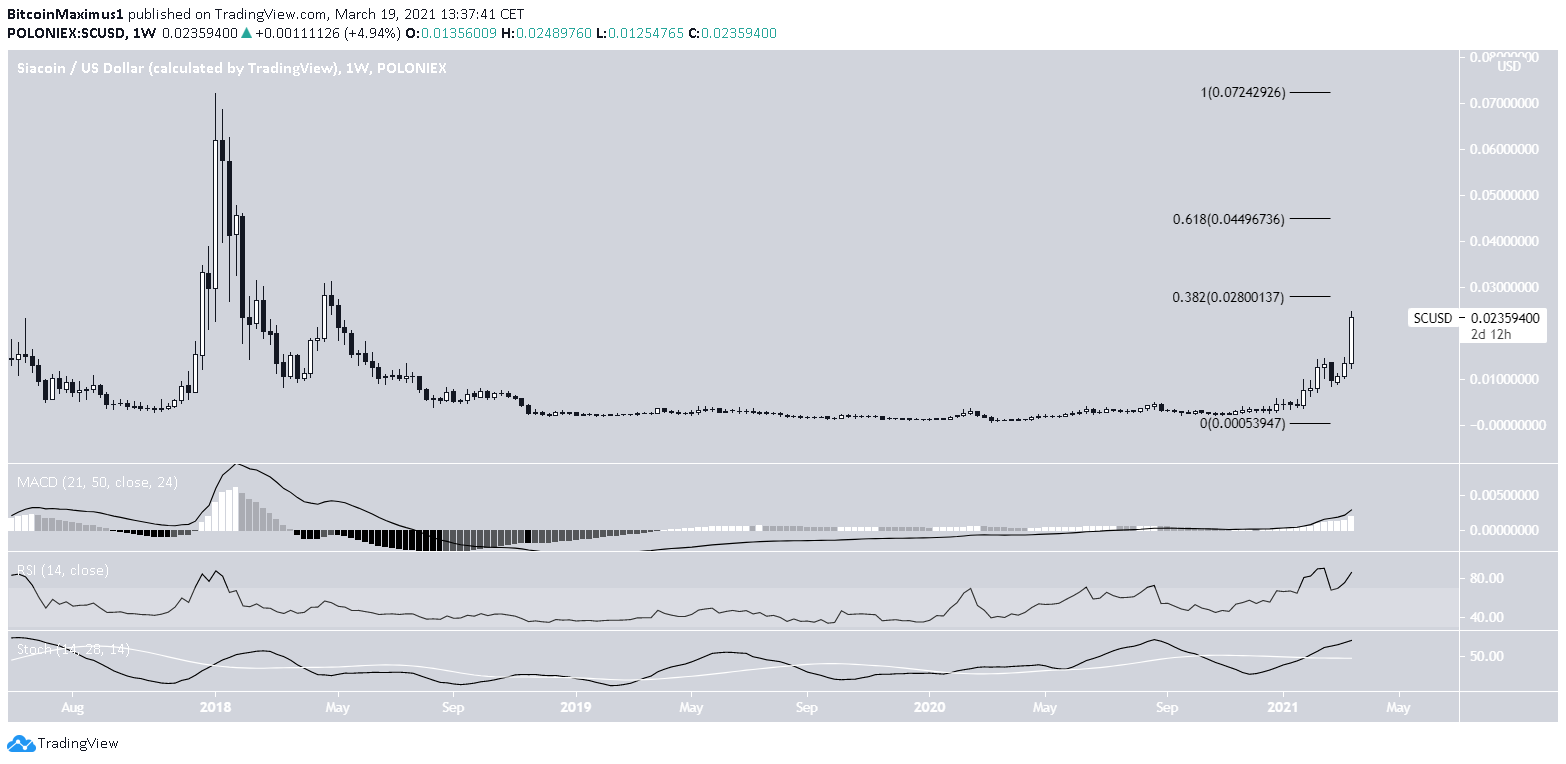 The closest resistance area is found at $0.028. If SC manages to close above it, it will find the next resistance at $0.044.