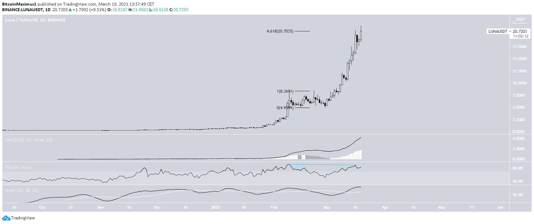 LUNA has been increasing since Feb. 28. On March 19, it reached a new all-time high price of $21.85.
