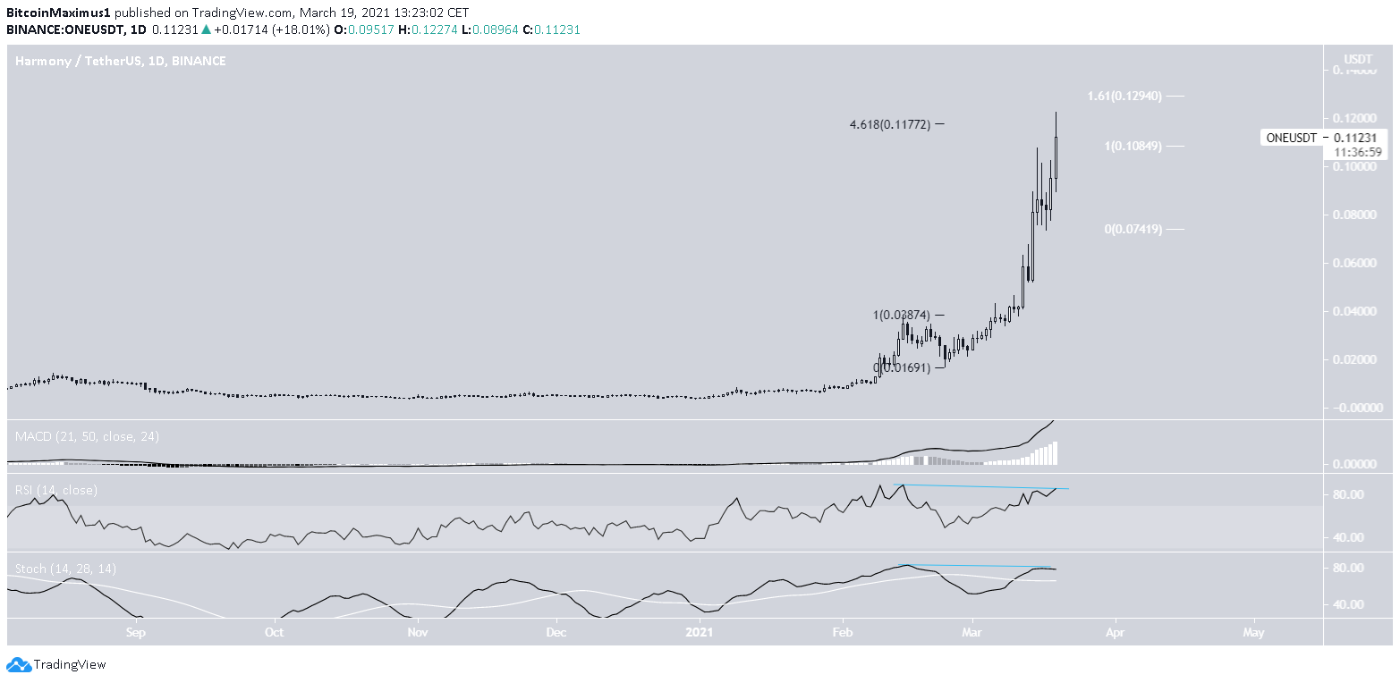 ONE has been increasing since Feb. 23. Today, it reached a new all-time high price of $0.122.