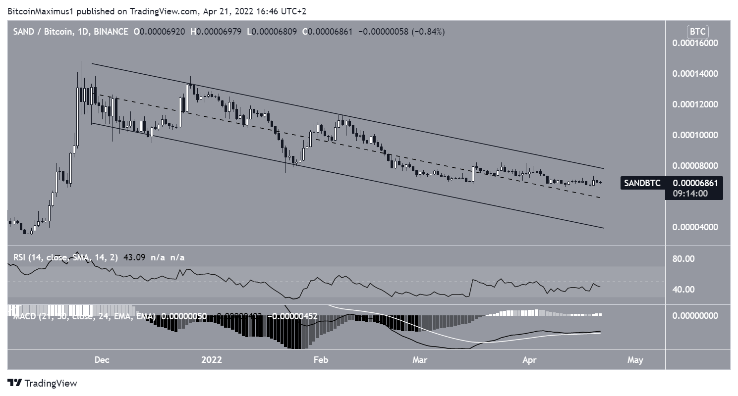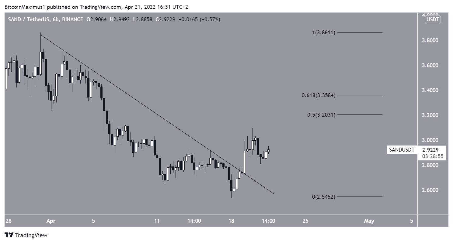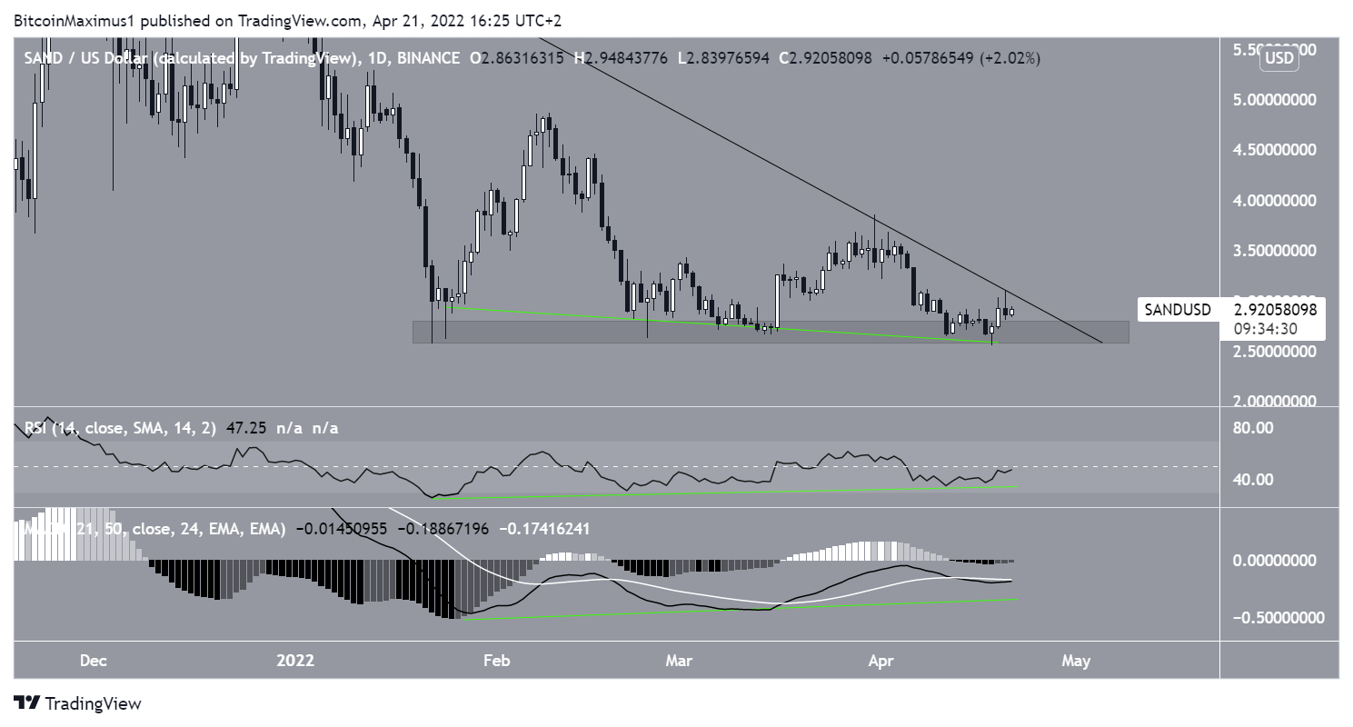 SAND has been decreasing underneath a descending resistance line since reaching an all-time high price of $8.80 on Nov. 25, 2021. The downward movement led to a low of $2.57 on January 22.