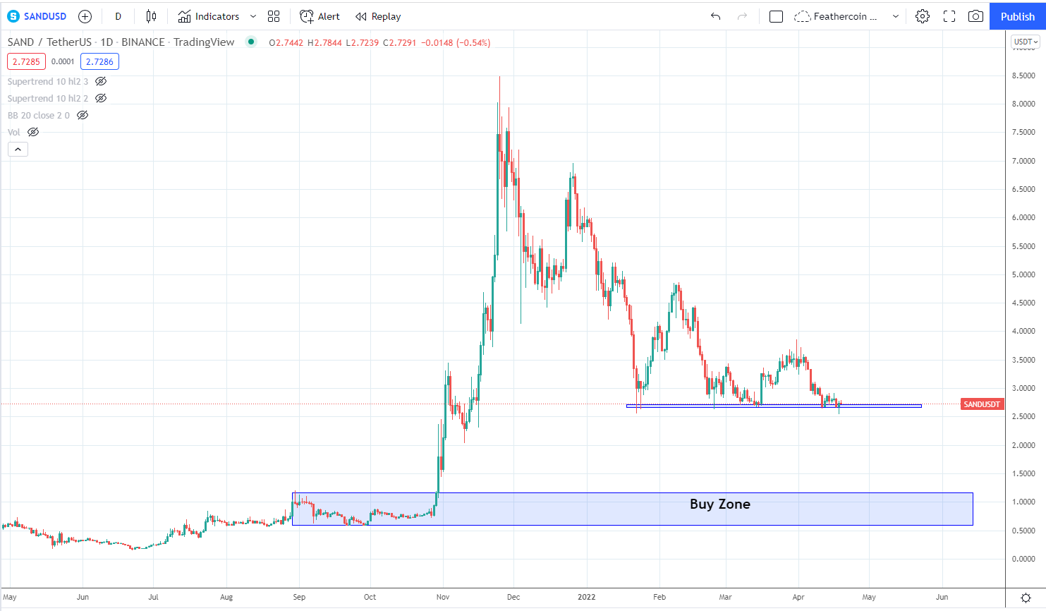 Since then, SAND has bounced at the $2.70 horizontal area thrice. However, each bounce has been weaker than the previous one.