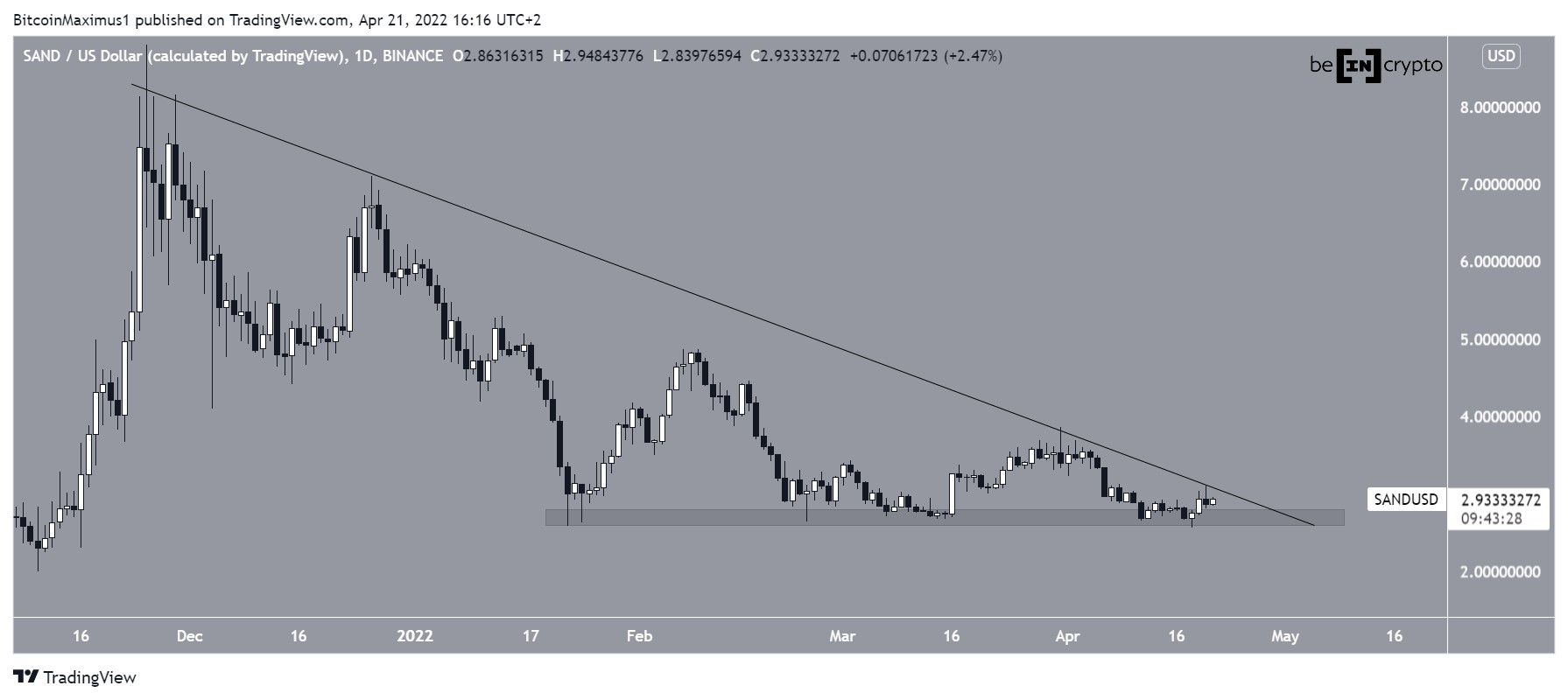 Market analyst @IncomeSharks tweeted a chart of SAND, stating that the price could eventually fall to $1.