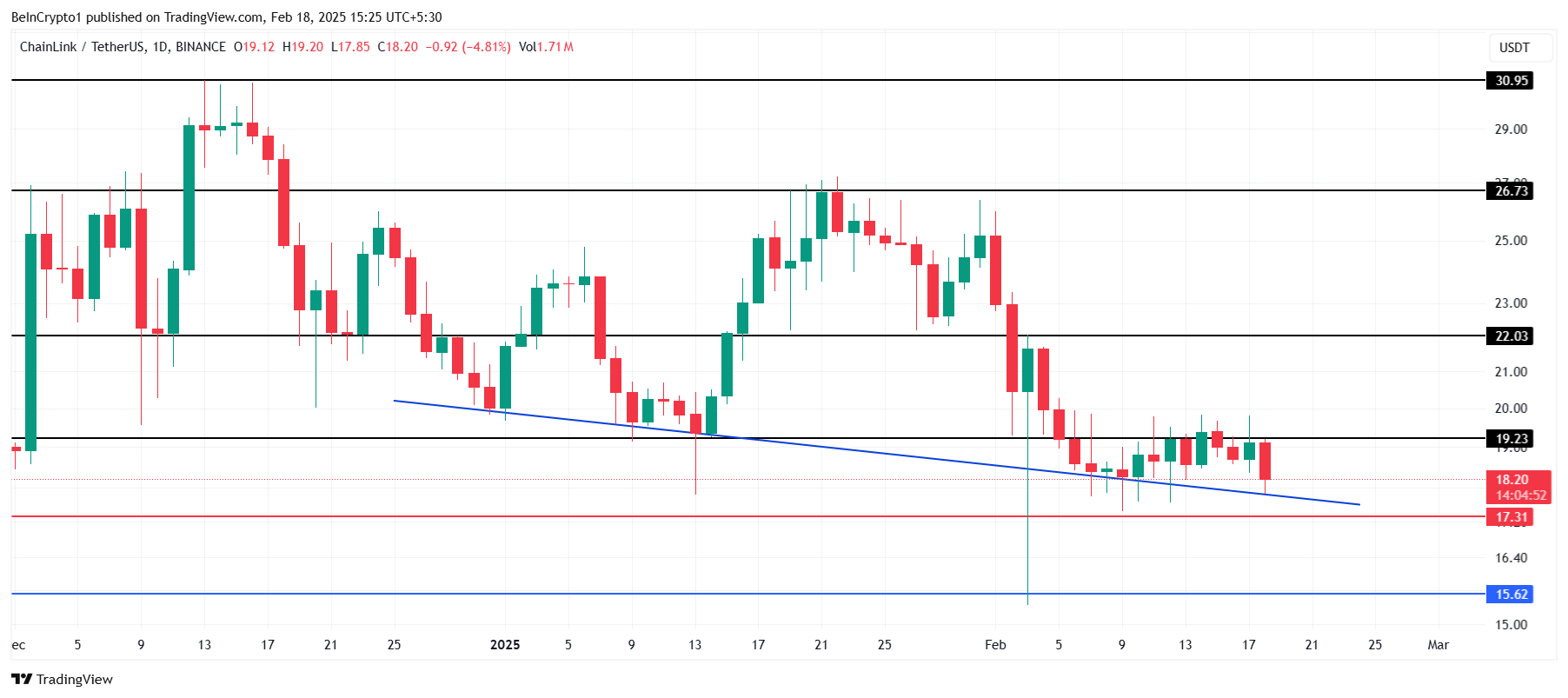 Successfully flipping $19.23 into a support level would signal further bullish momentum for LINK. This would enable the altcoin to target $22.03, a crucial resistance point. A breach of this level would help recover a significant portion of the recent losses, boosting investor sentiment and confidence.