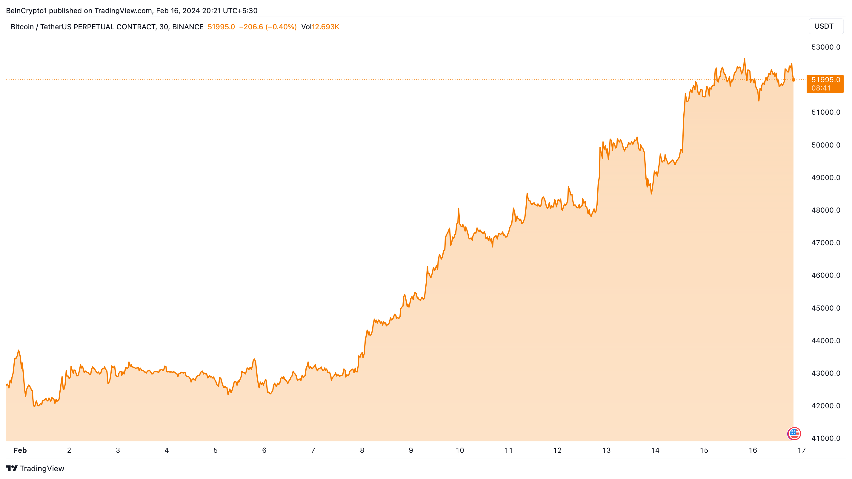 Its rising popularity can be attributed to the substantial inflows into spot Bitcoin ETFs over the past week. Indeed, this key factor has propelled BTC’s price beyond $50,000. The resilience and long-term growth trajectory of Bitcoin remain undisputed.