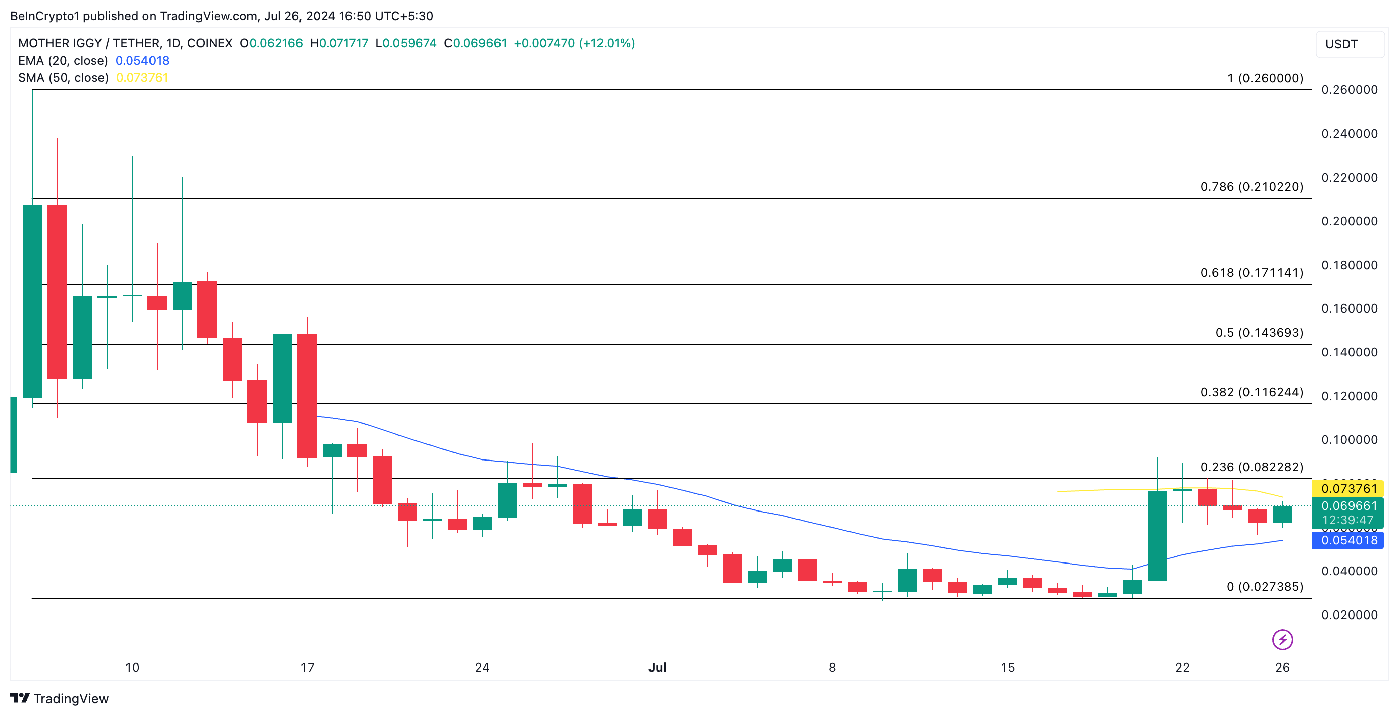 Mother Iggy (MOTHER) Trades Above 20-Day EMA, Eyes 50-Day SMA