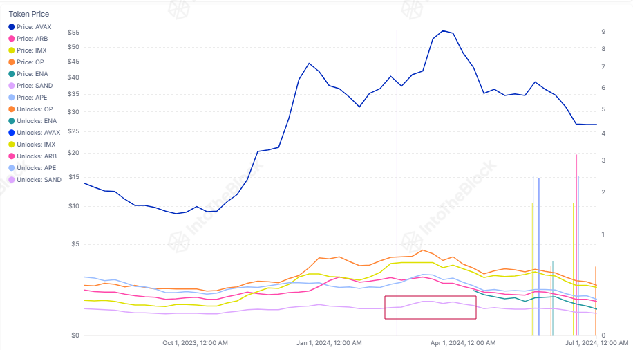 A common question is whether token unlocks directly impact prices. While it makes sense to assume that a large supply release would decrease prices, this isn’t always the case. For example, despite a major unlock event in February, SAND price increased. This suggests that such events may be priced in before they occur.