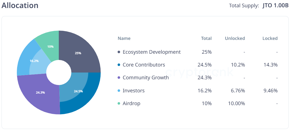 - Total supply: 1 Billion JTO